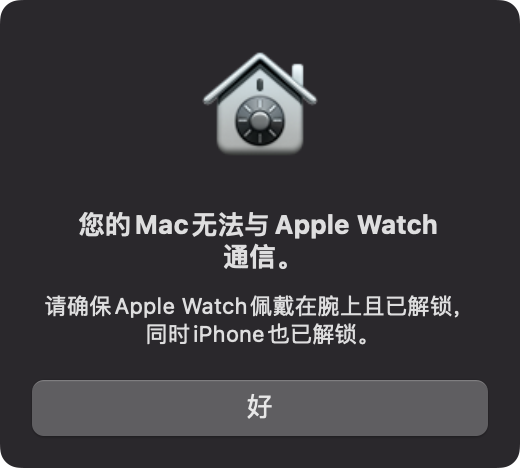 前段时间还是可以使用apple watch对MacBook 进行解锁的,但最近三天突然不可以了。在设置内更改却出现如图显示的对话。目前情况