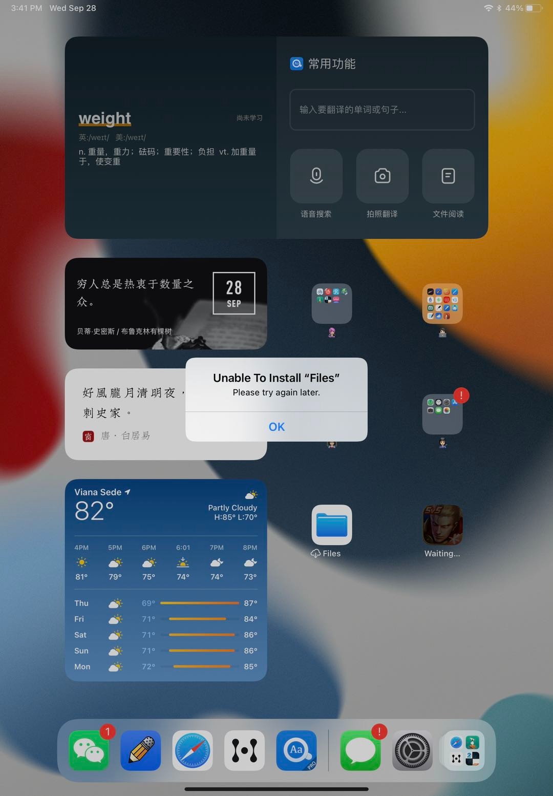 请问你是指在使用 iPad 时遇到了无法安装 App 以及无法在“设置”中下载“词典”的情况,是吗?如果是的话,由于暂时还没有其他社区用户来回复你的帖子,在此之前,建议你不妨先尝试以下操作步骤: