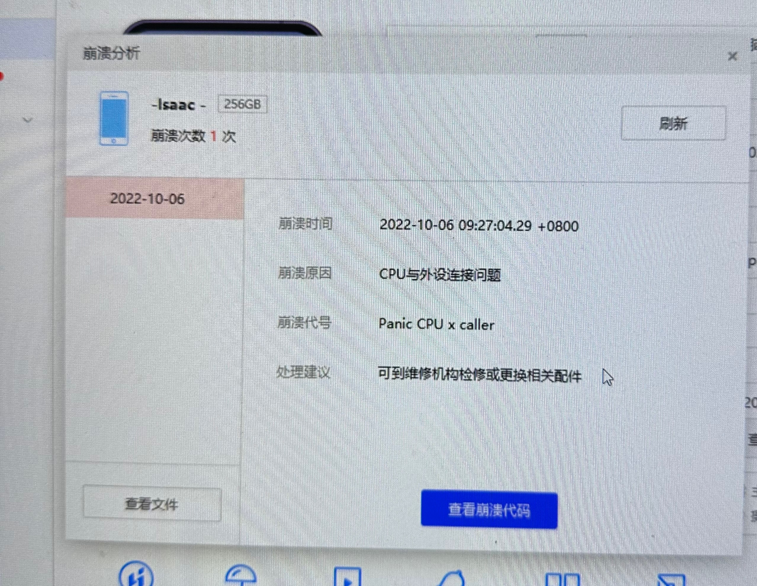 我死过一次机之后,爱思查到了系统崩溃1次了,不清楚是系统问题还是硬件问题