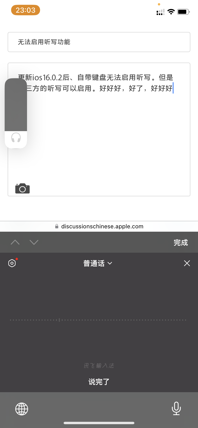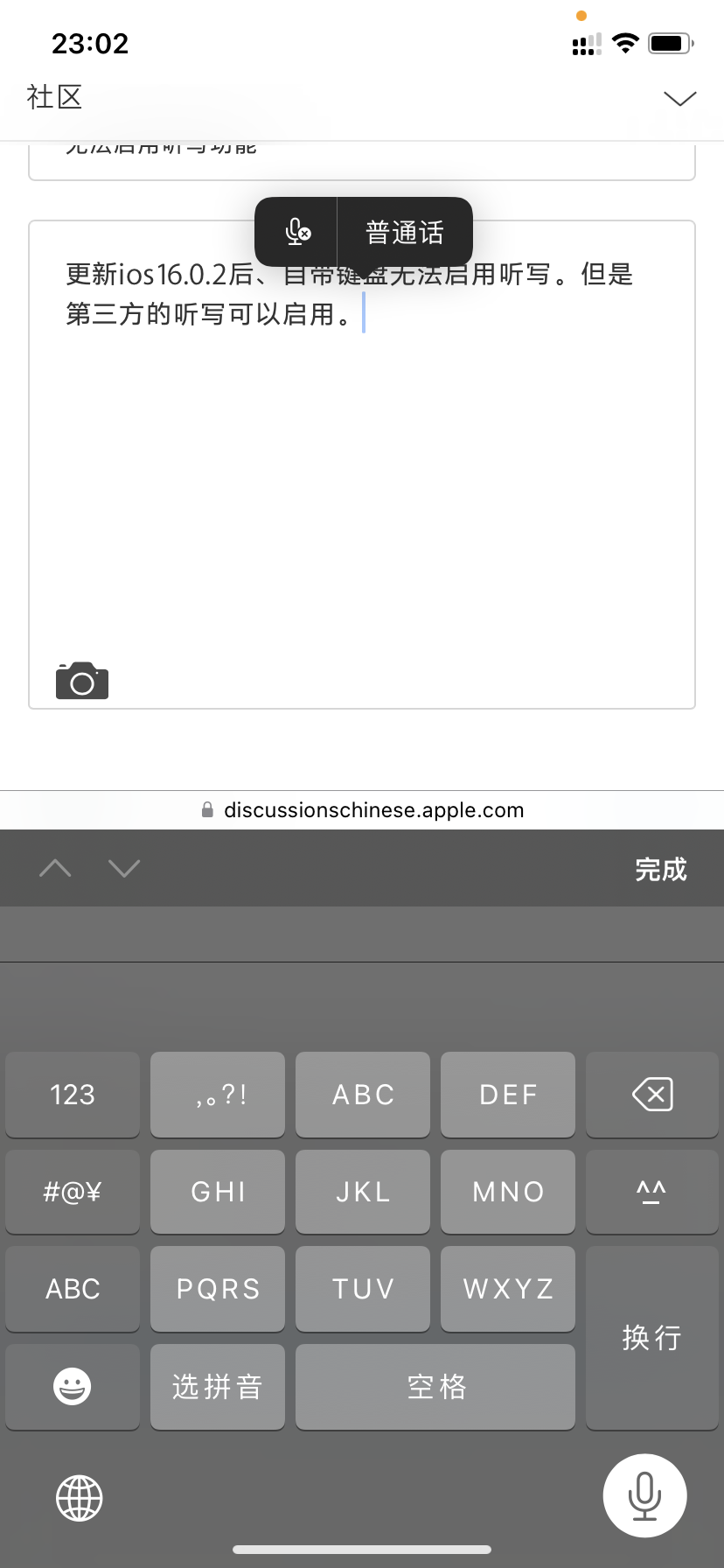 更新ios16.0.2后、自带键盘无法启用听写。但是第三方的听写可以启用。