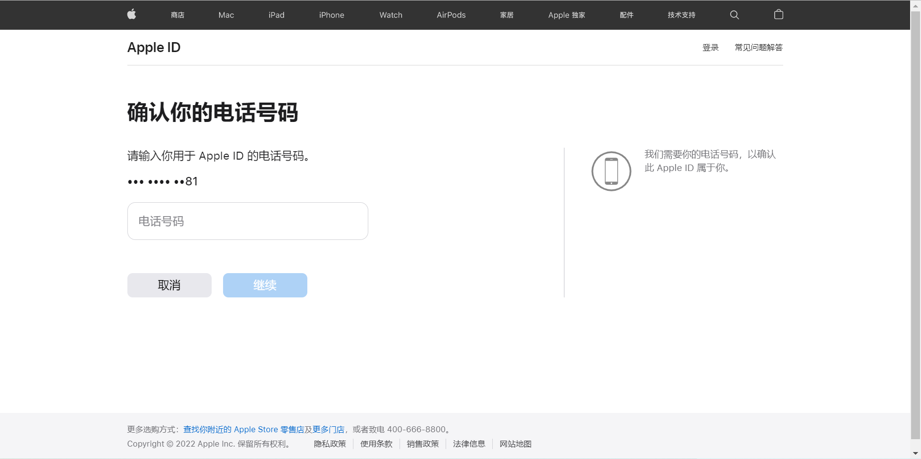 apple id忘记密码了,恢复账户时系统要求输入我的手机号,且不可跳过,但手机号也已忘记,页面上也无其他验证方式可选,明明appleid所对应的邮箱可以使用,却无法通过邮箱验证。