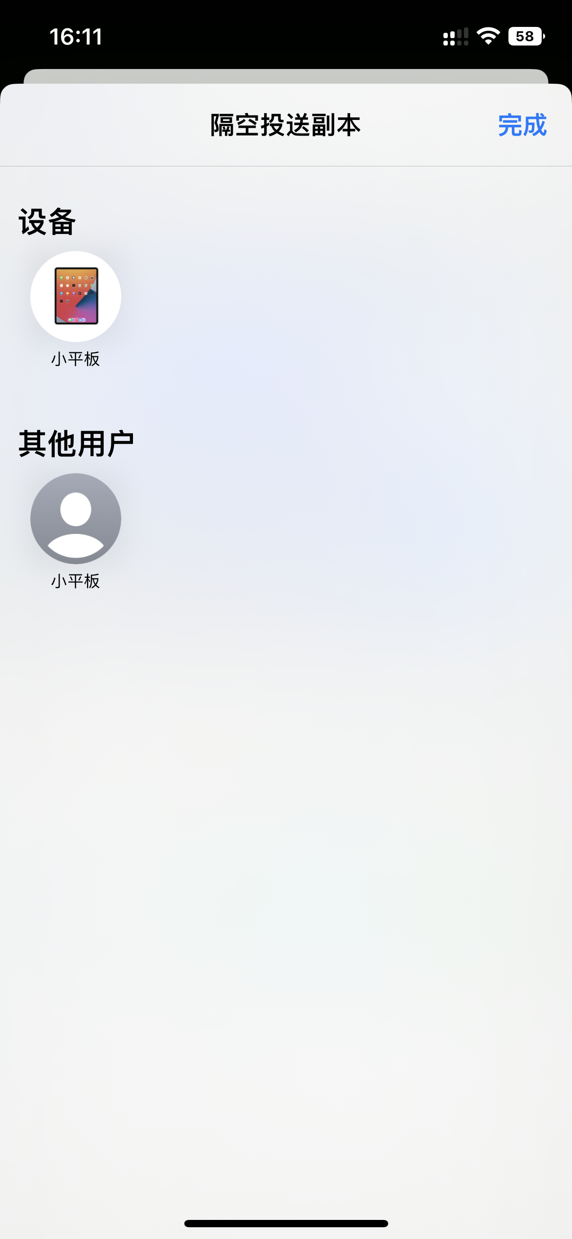 如图所示,在使用隔空投送的时候,显示两个相同的设备,而且必须选择其他用户那里的名字才能隔空投送成功,选择设备那里的名字无法成功 请解答 谢谢