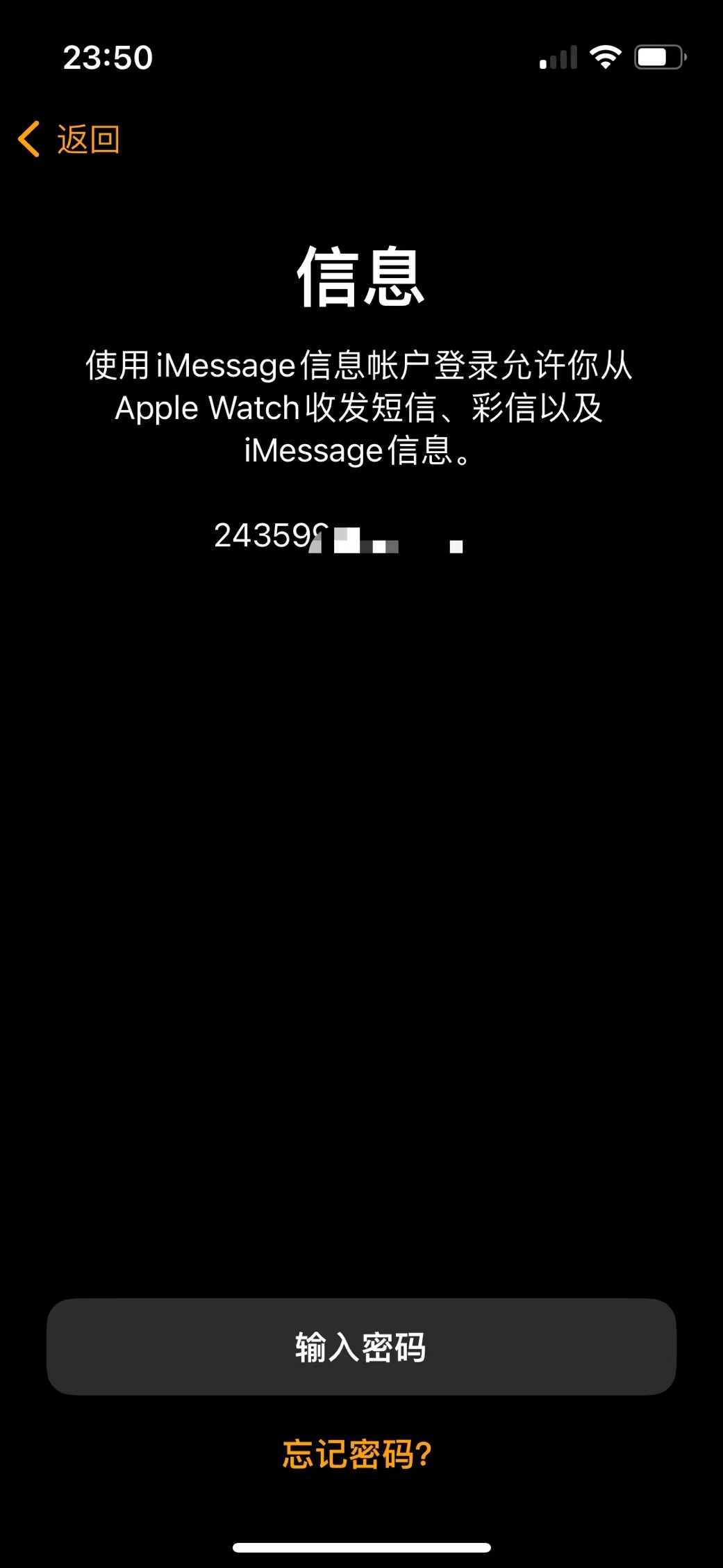 我的iphone13 mini使用我自己的apple ID登录并激活,从未使用过其他Apple ID登录过。目前我不论使用任何解绑或者全新的apple watch都可以激活,但是无法进行配置,因为一直提示我输入另一个apple ID的密码,用来服务于iMessage功能!!但是我的手机iMessage功能是关闭状态,而且我不明白为什么我自己的手机Apple ID激活我自己的apple watch却需要输入一个其他人的apple ID密码?