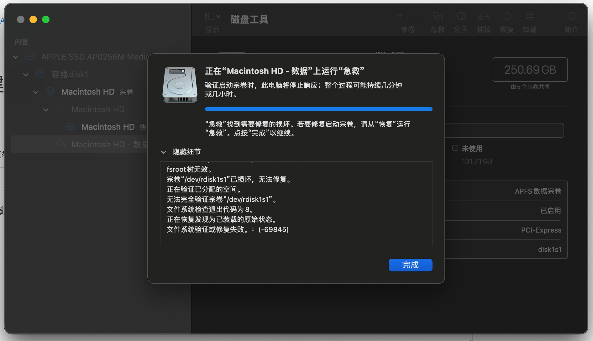 Mac磁盘工具无法对文件进行恢复