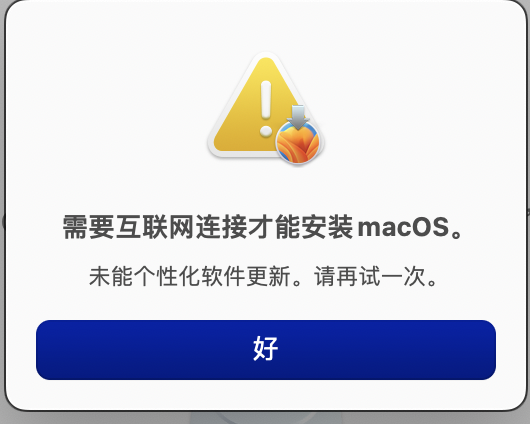 提示个性化软件更新异常 不能正常更新macOS Ventura 13.0 (M1Pro )