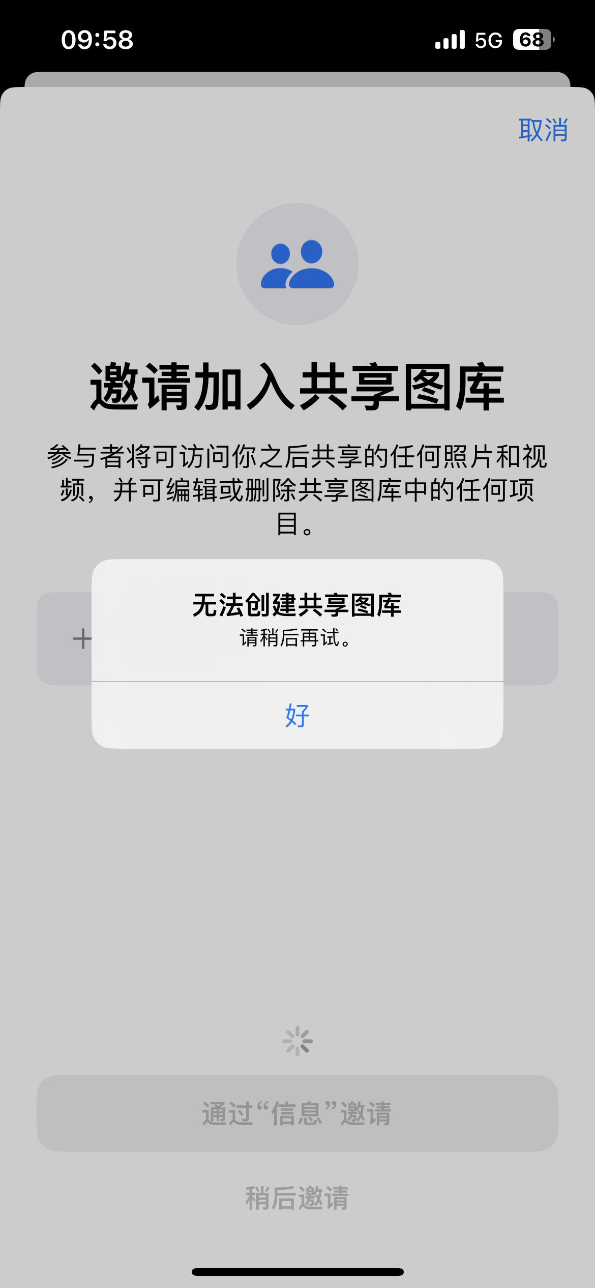 这跟机型有关系吗?我是SE2手机上无法创建共享图库,可是登录icloud网页上,却可以看到共享图库。同时家人的11可以创建,11创建好后邀请SE2,也是失败,SE2这边显示共享图库不可用,内容所有者已停止共享,或你没有打开的权限。求解拜托了,全网都搜不到相关问题