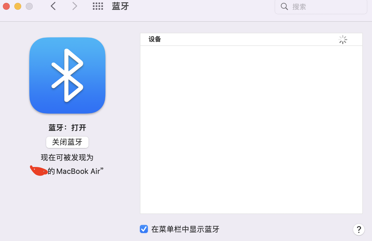 mac air m2 ,一直显示加载,显示不了其他蓝牙设备。这个问题怎么解决