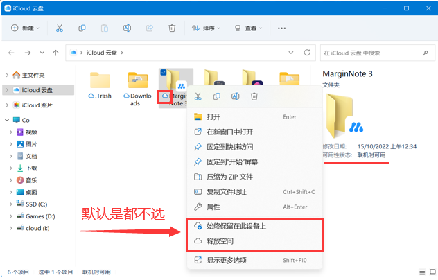 勾选“始终保持在此设备”前后区别: