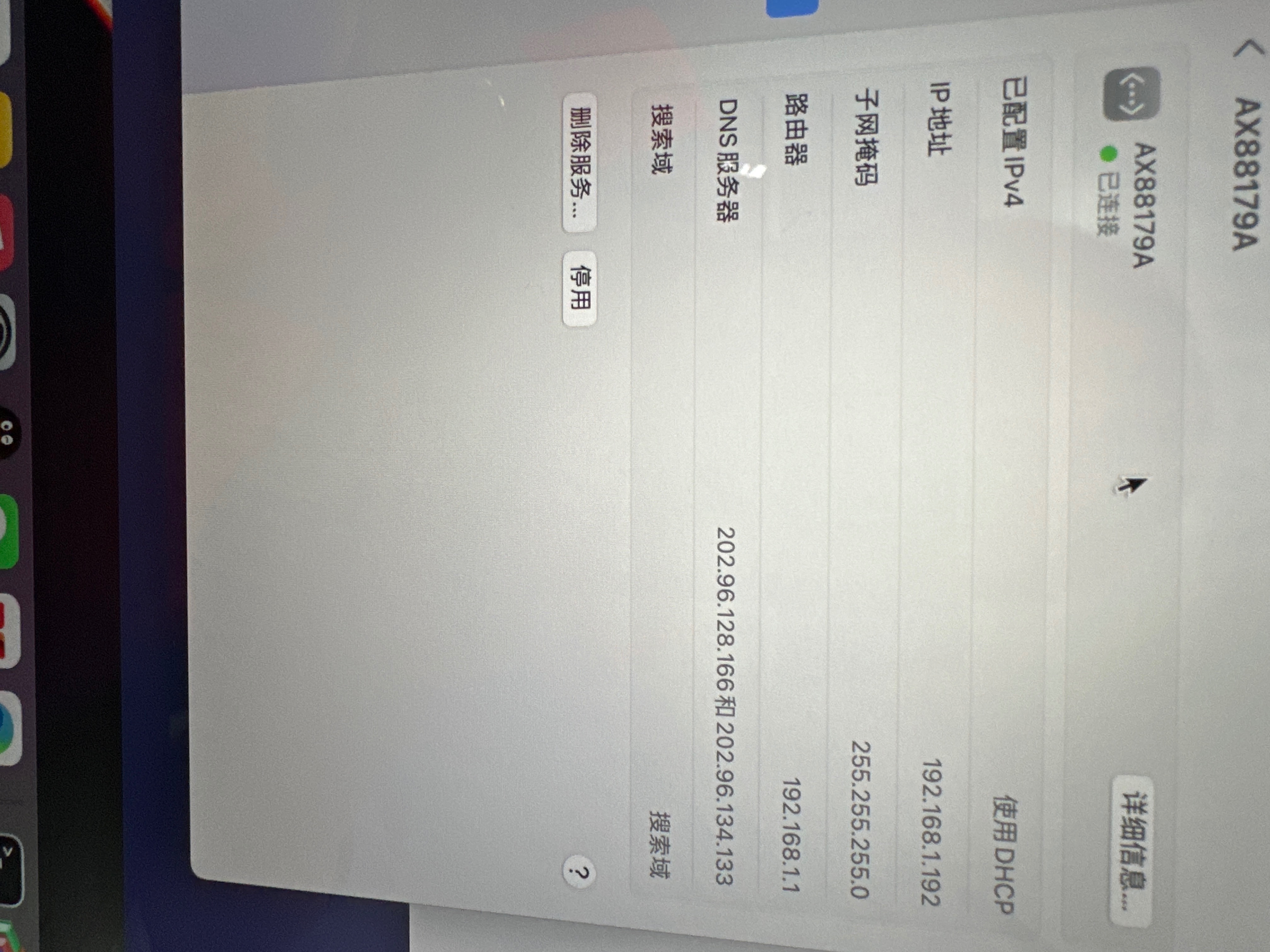 说的不是网线。你看你最初回复我第一个问题的的第二张图中的下面,“删除服务...”按钮的上面的那个“搜索域”的设置,你的那个貌似空,Windows 的默认都是 Workgroup,但是具体是什么,要看那台机器的设置。
