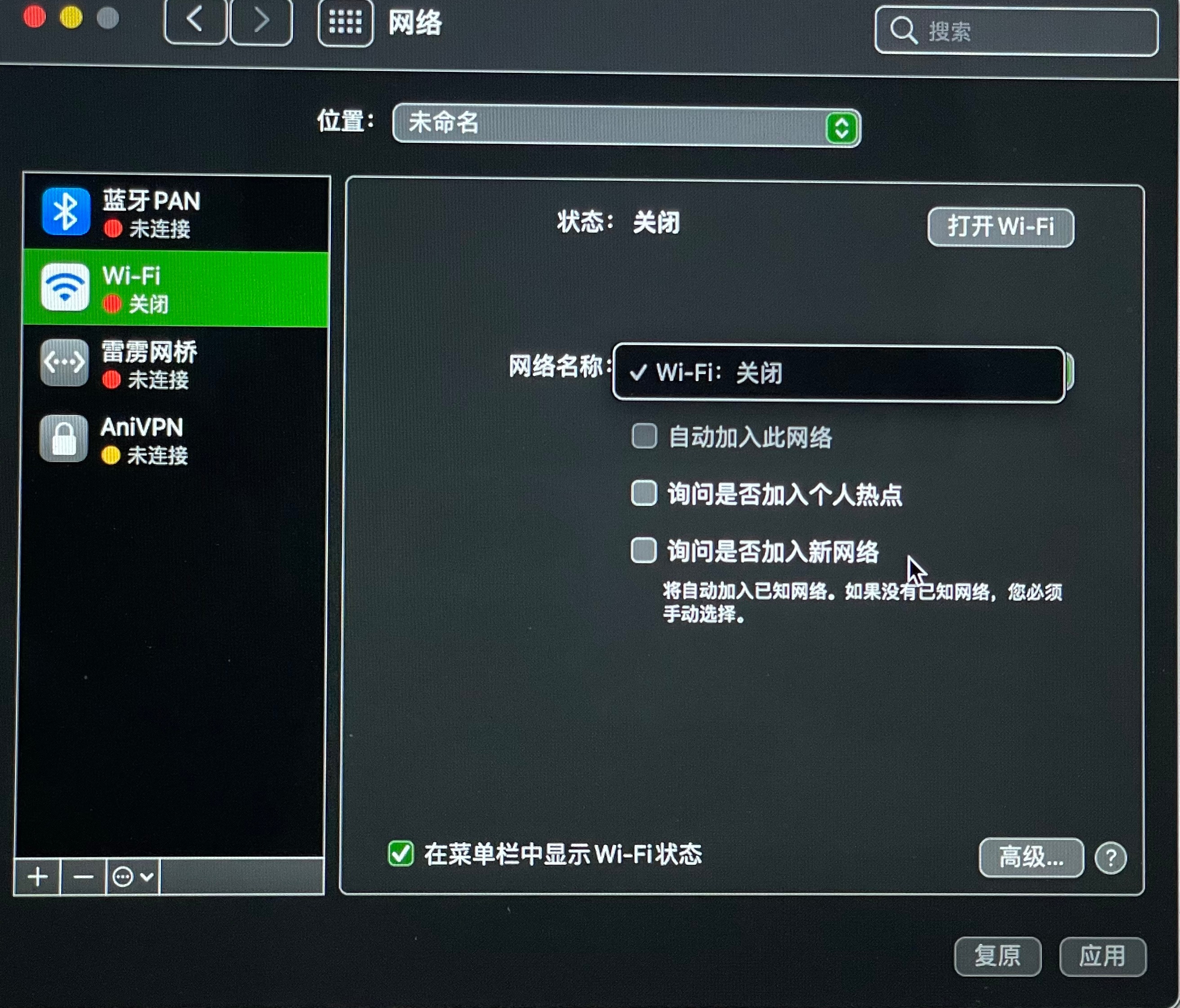 MacBook Pro WiFi打不开 也搜索不到其他信号 电脑型号A1398 系统版本11.5.2