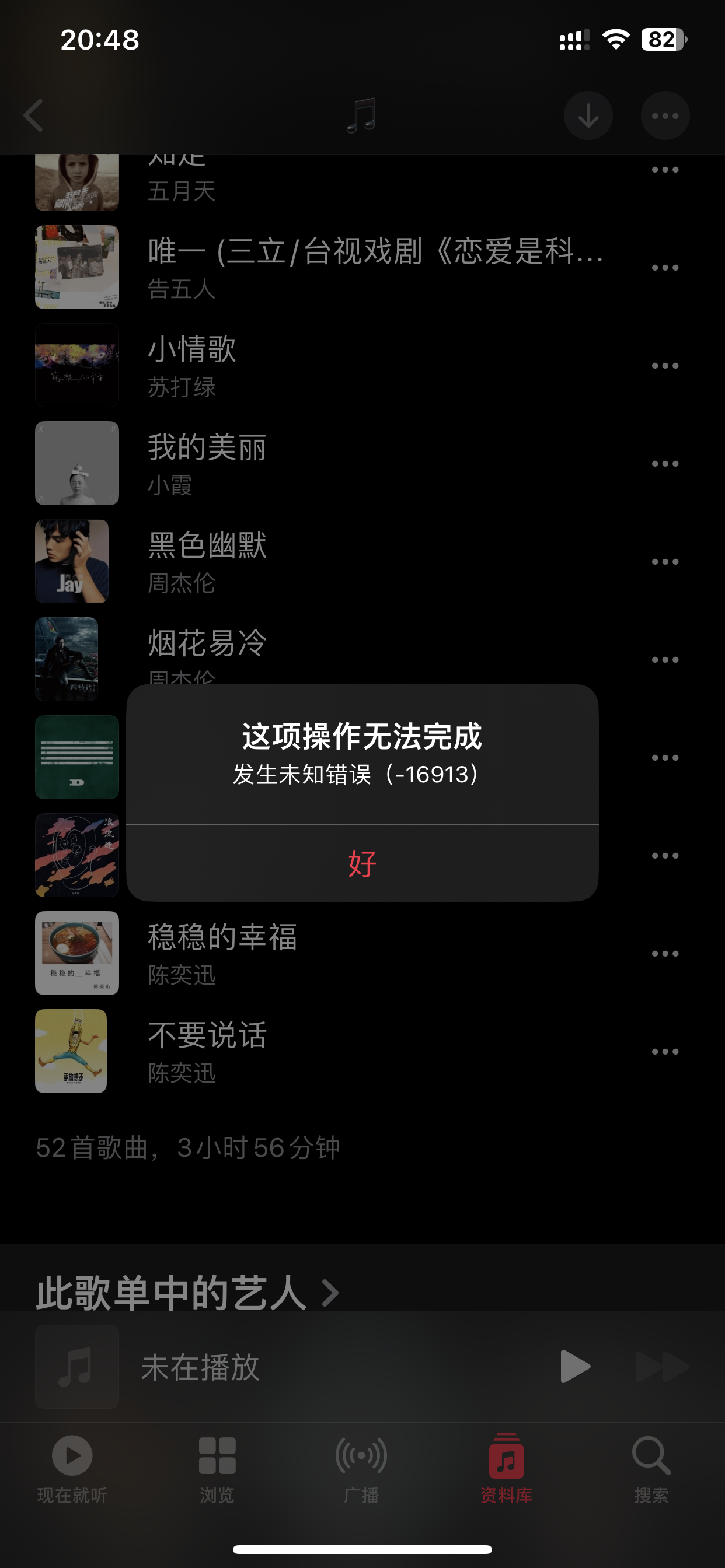 重启手机也无法修复错误,而其他歌曲可以正常播放。系统iOS16.1设备11PM