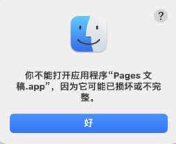 你不能打开应用程序“XXX”,因为它可能已损坏或不完整。