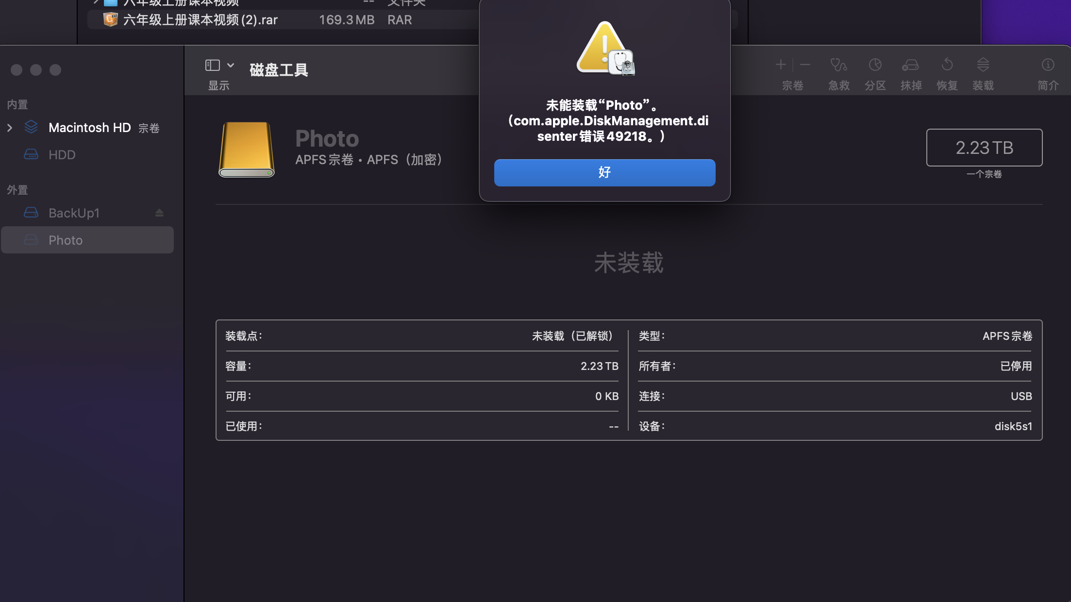 快崩溃了,怎么也加载不了APFS加密的磁盘了。