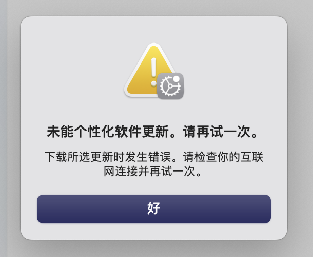 Since the upgrade to ventura22a5311f, subsequent upgrades have been blocked by this prompt, so the current system is still in this version and cannot be updated after repeated attempts.