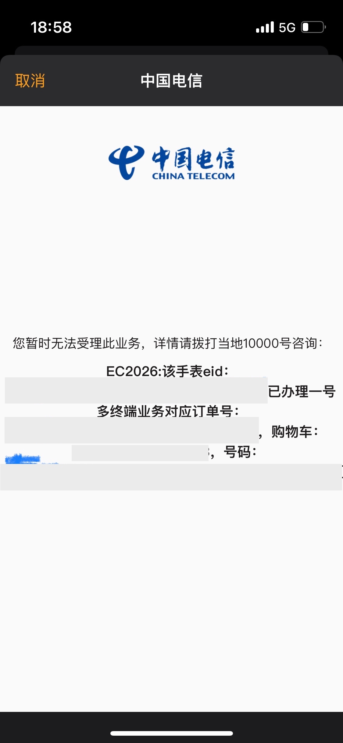 如果仍然不能正常绑定,可以去营业大厅寻求帮助。这是某通讯运营商官方app提示的,也就是,自己重新设置esim绑定有概率会出现问题,我猜是运营商系统更新账户信息不完善导致的。