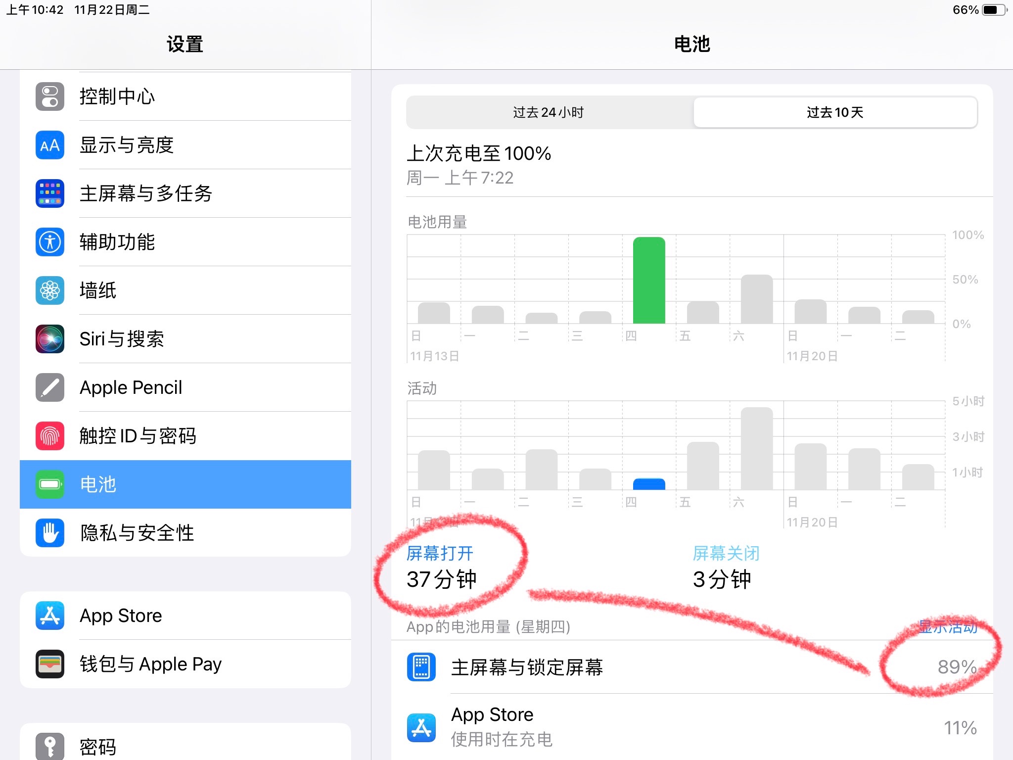 这张是电池用电量,我的疑问是:是屏幕打开了37分钟消耗了89%的电吗?