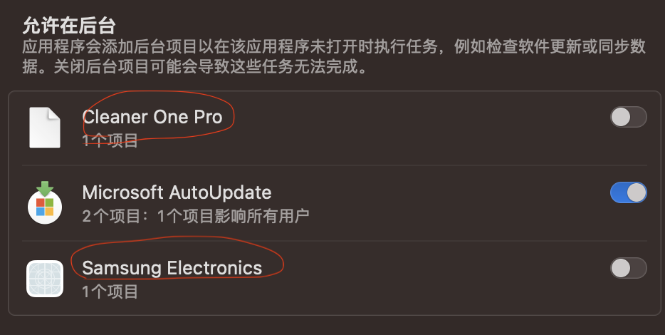macOS 13卸载软件后在“登录项-允许在后台”列表有残留