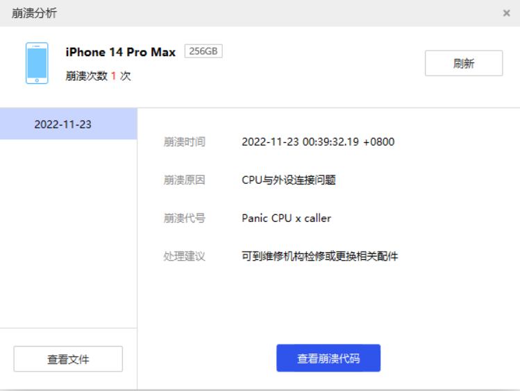 我的苹果手机昨晚崩溃了。崩溃原因是CPU与外设连接崩溃。