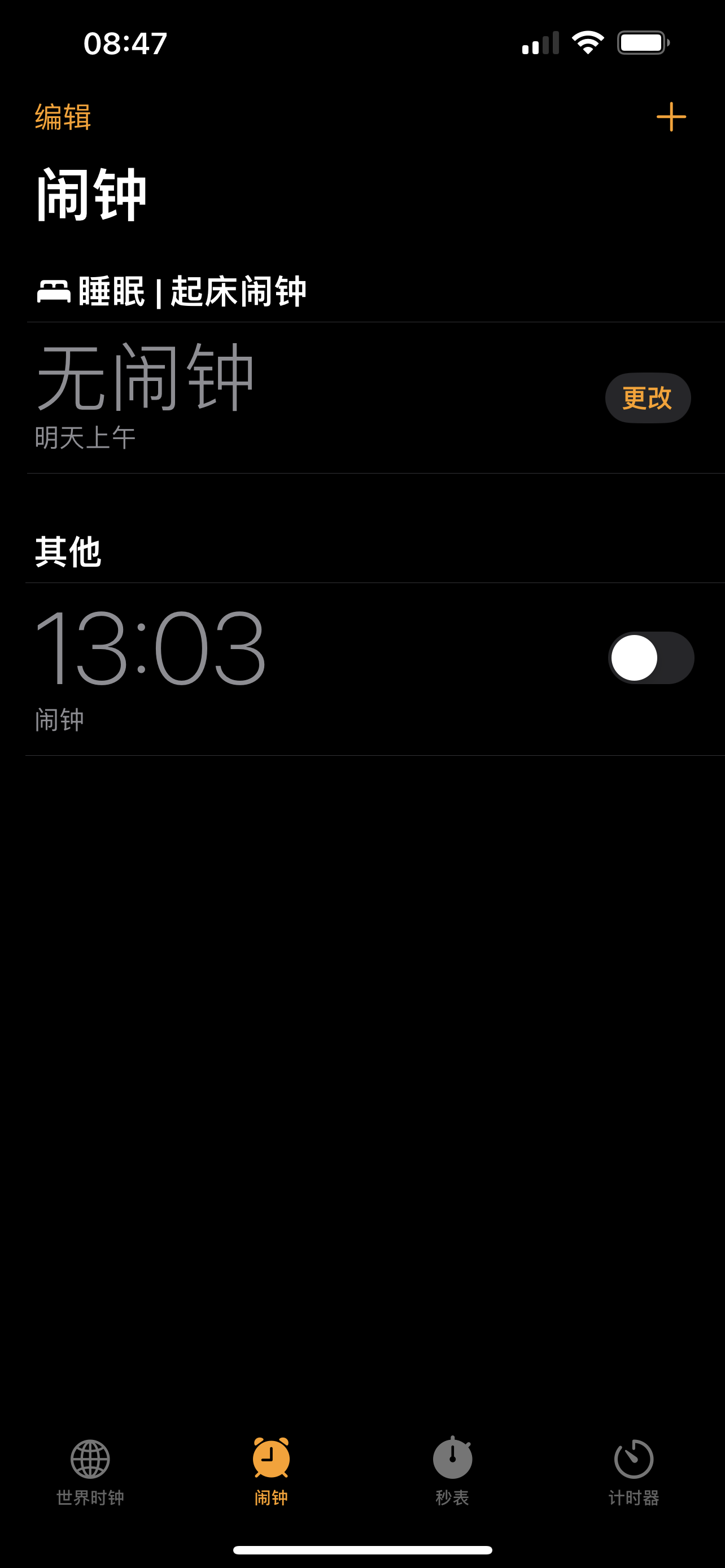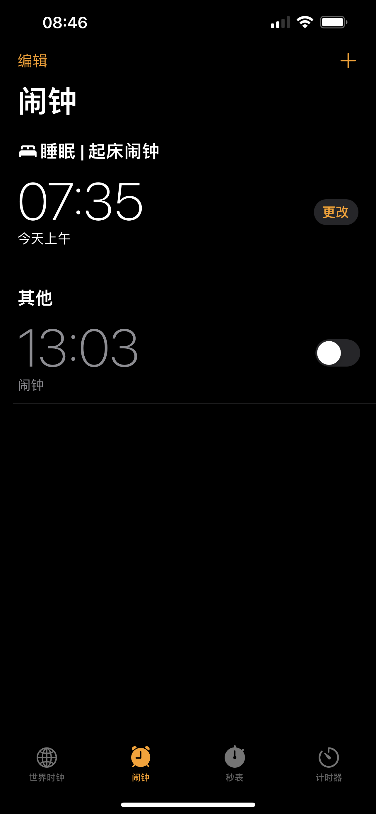 若要更改闹钟,请轻点左上方的“编辑”,然后轻点闹钟时间。