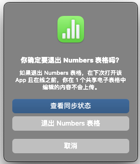 在编辑保存在 iCloud 的 Numbers 文档后,选在退出App会提示(同一个iCloud账号下几台设备都有一样的问题,在不同的网络环境下都一样):