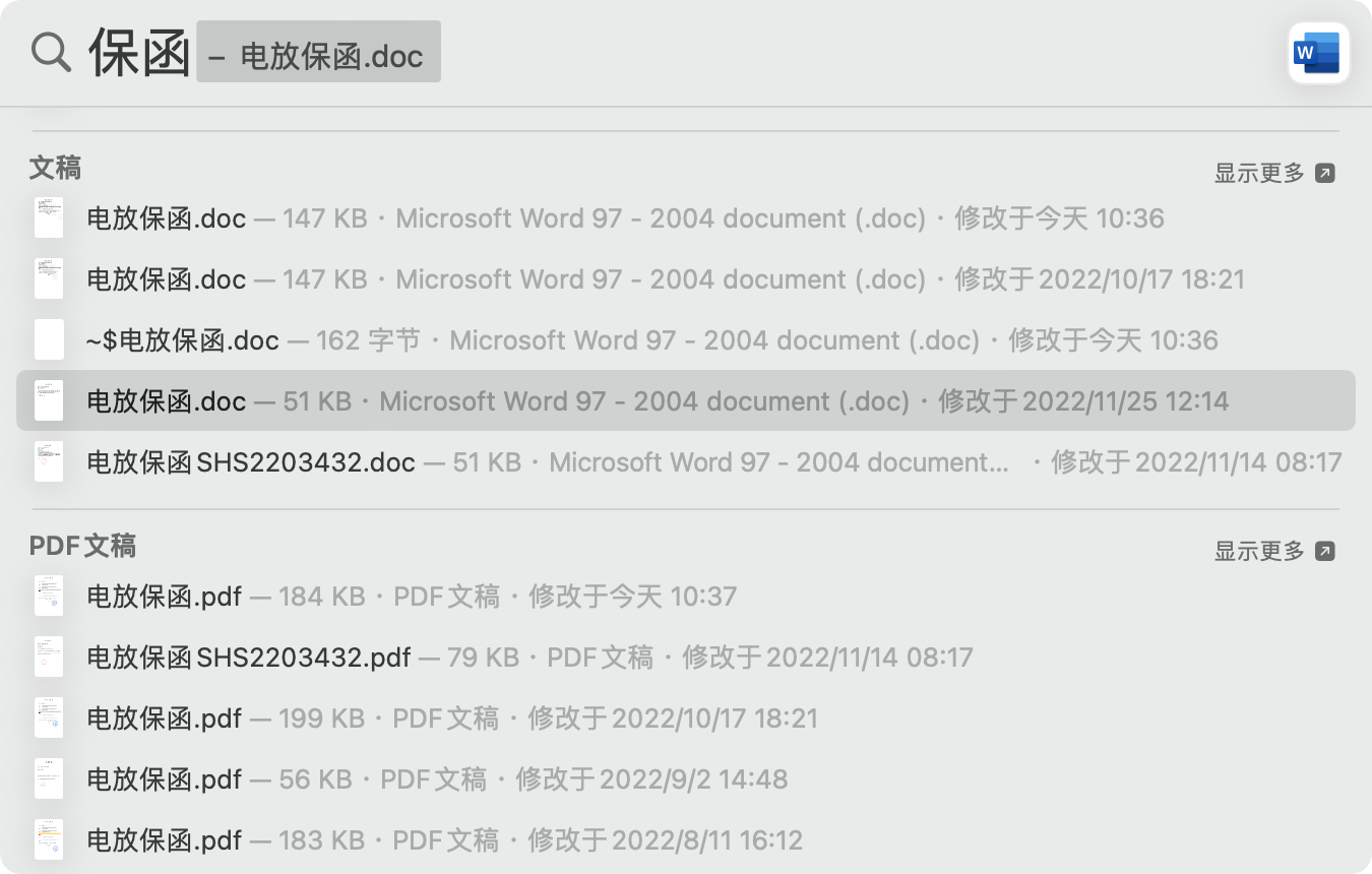 之前的系统,输入A之后,出现带A的文档,轻点任何PDF/Word等,都有快速预览(类似 空格键 生成预览)