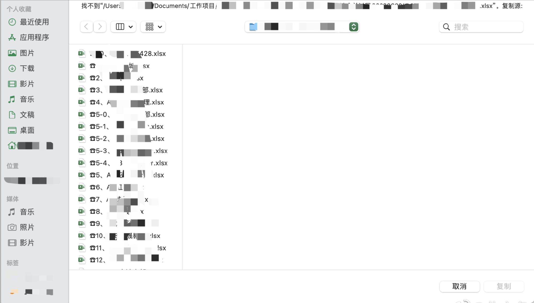 请教Mac上更新Excel链接时显示“无法找到文件,请复制源”的问题。