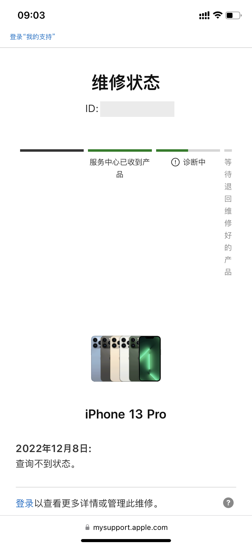 iPhone13pro 12月1号到店说返厂,12月7号晚上才显示到维修中心,12月8号凌晨就显示查询不到状态,一直到现在12月13号了还是这样,要等到什么时候噢,都十多天了