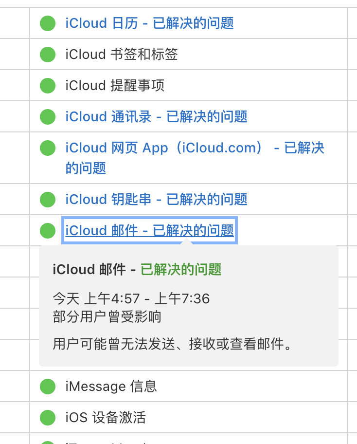 以下用户的用户个人资料: 芝华塔尼奥 芝华塔尼奥 Community+ 2025 用户级别: 级别 10 82,040 积分 2022年12月15日 上午2:16 回应 笨笨1223 是的 服务器问题 已经解决 等等明天再看看 应该可以了iCloud 邮件 - 已解决的问题今天 上午4:57 - 上午7:36部分用户曾受影响用户可能曾无法发送、接收或查看邮件。 回复 链接