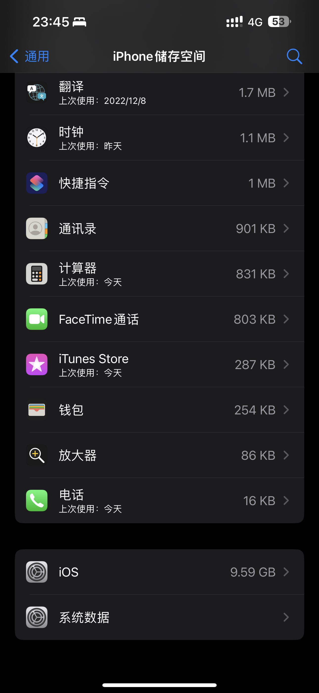 实际存储空间和显示不一样,每次重启和更新系统后会短暂正常一小会,还有就是这个系统数据直接不显示