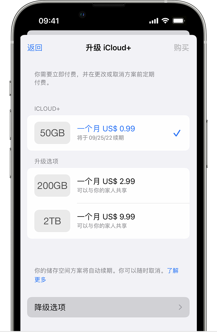 如果你降级或取消 iCloud+ 订阅方案,相应的变更会在当前订阅账单周期结束后生效1。