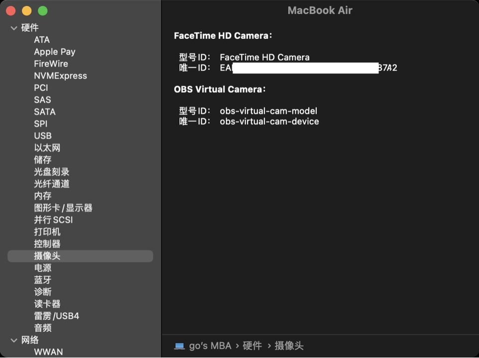 查了系统信息,摄像头只有FaceTime高清摄像头(内建)和我iPhone的相机,没有虚拟摄像头,在Library里也没有CoreMediaIO这个文件夹,就很突然崩溃得诡异😭