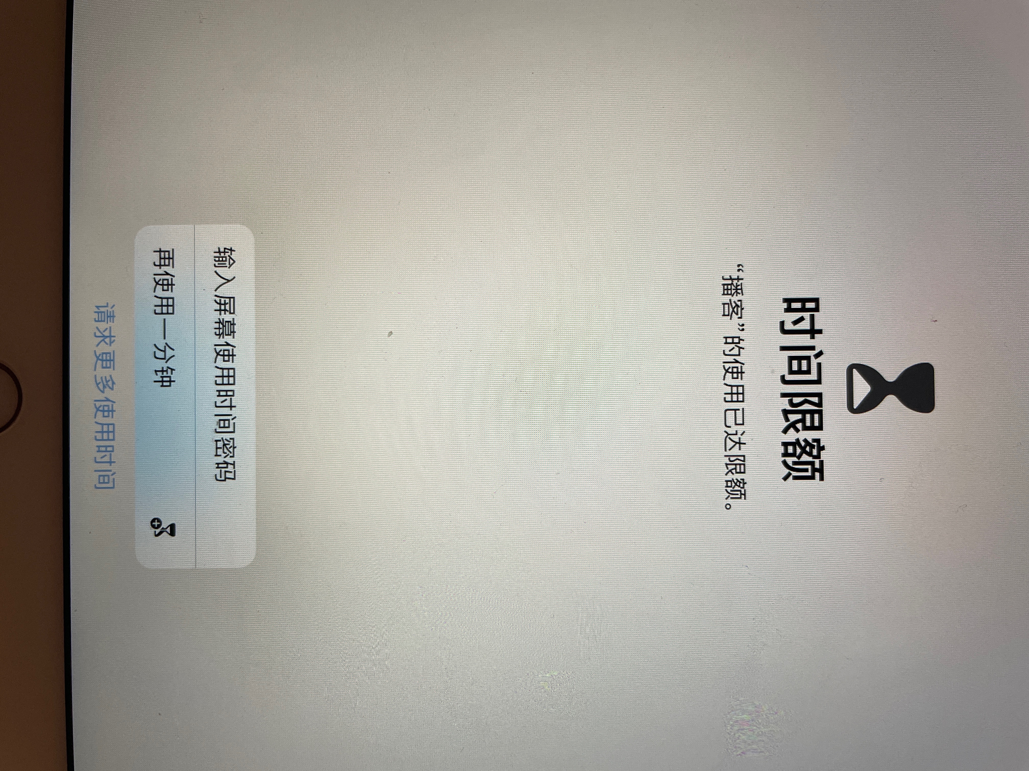 给小孩的iPad设置了屏幕使用时间,但是时间限额到设定值后,还可以反复使用“再使用一分钟”这个bug,一直用下去,如何关闭“再使用一分钟”这个选项,或者让这个选项只能用一次,不能反复的用。