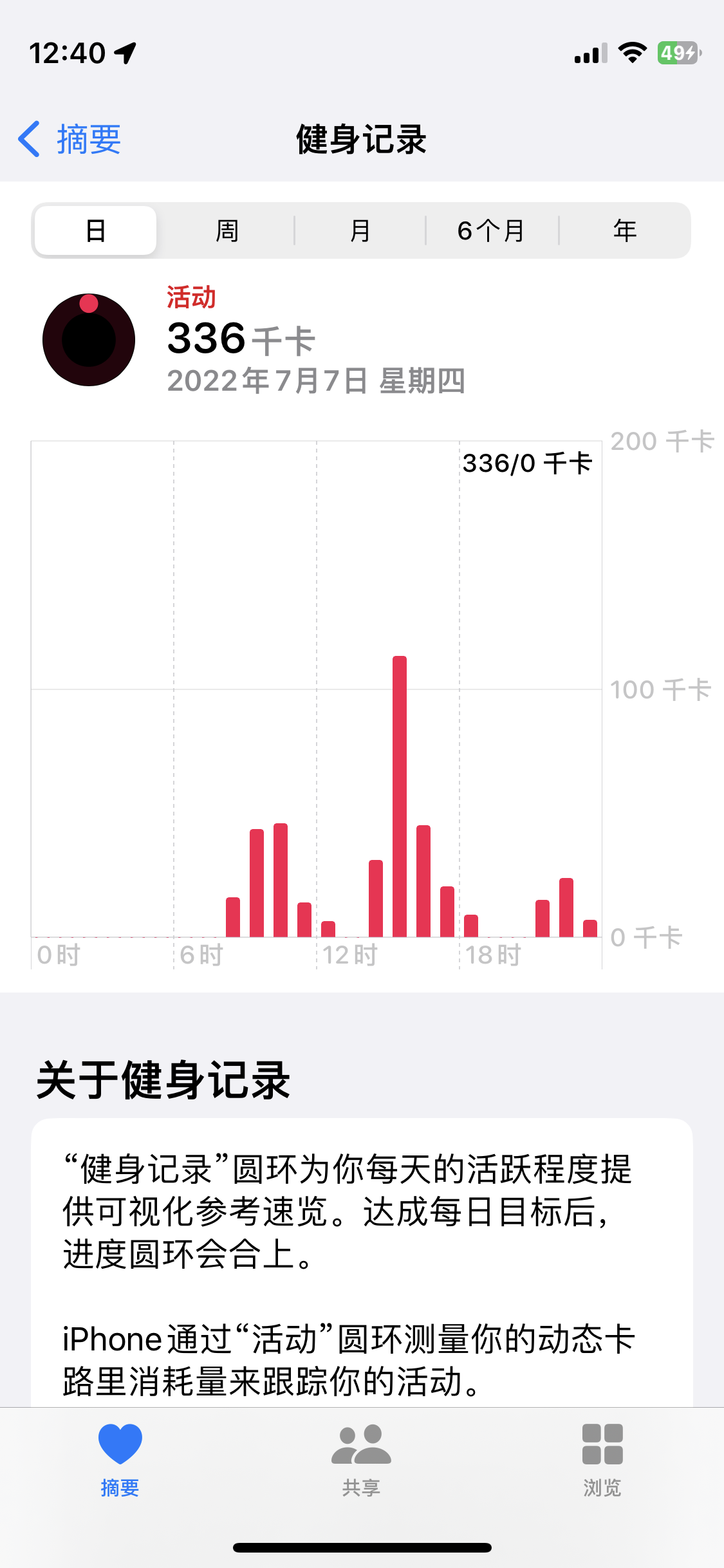 你的健身记录是你的iPhone自己记录的,图中的健身圆环只有一环(红色),若为Apple Watch记录则有三环(红绿蓝)。