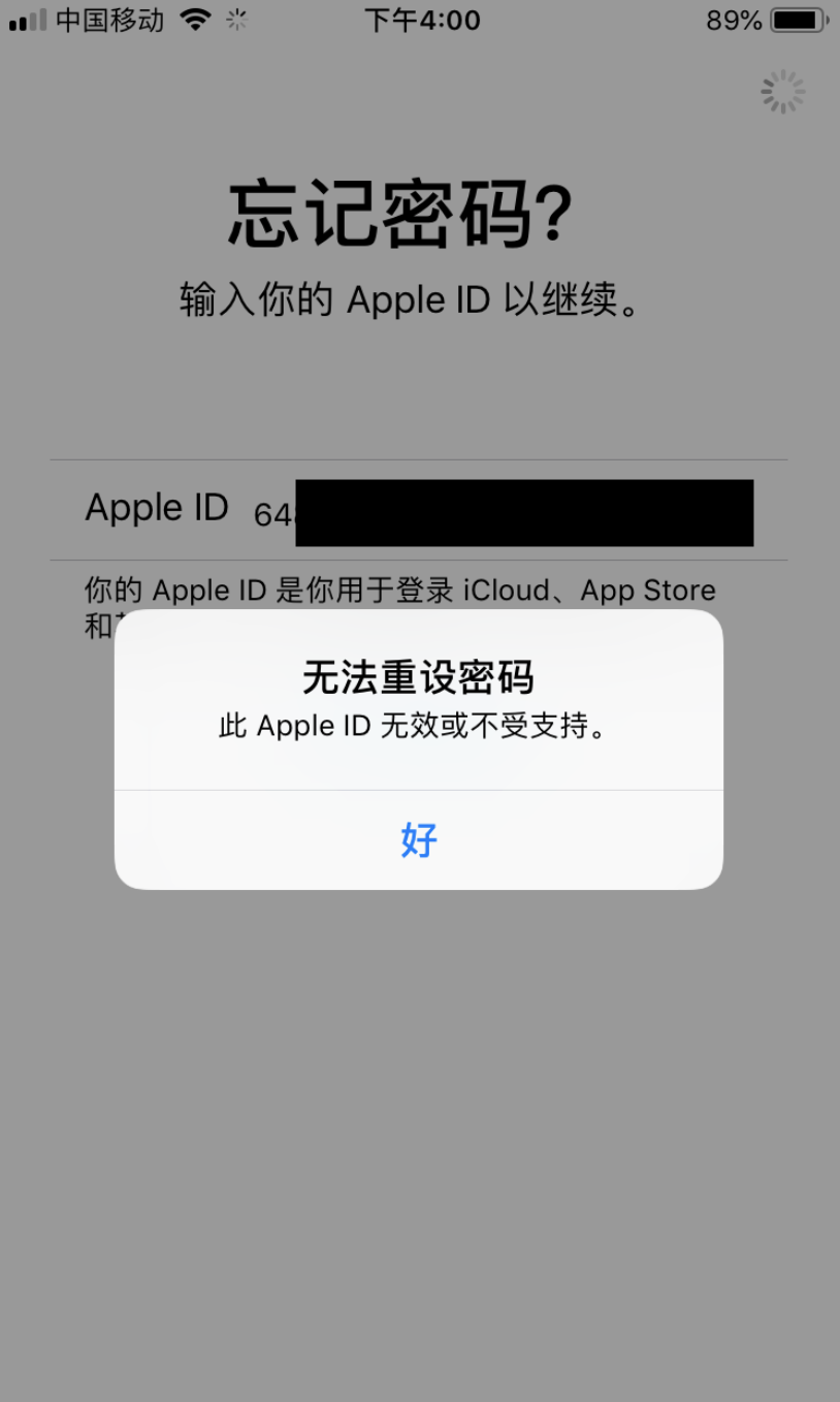 这是我妈的旧iPhone,她的Apple ID没有退出登录,我想自己注册一个。所以我需要输入密码,因为我不知道密码,所以选择重设,输入完Apple ID他告诉我此Apple ID无效或不支持,就是无法重设密码,怎么办?