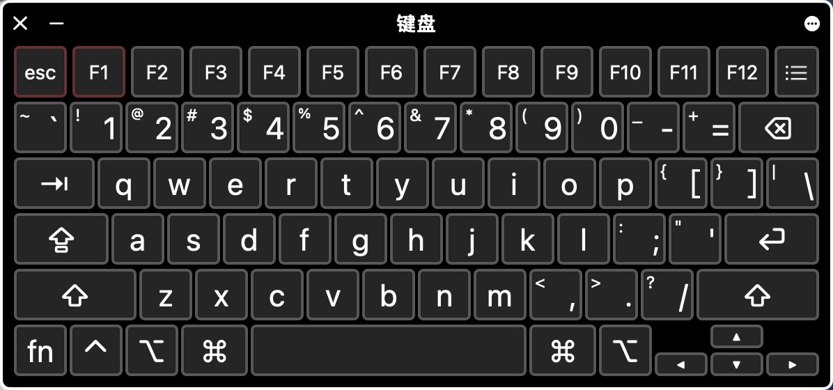 此外,我还试过外接键盘、内置键盘、网上的键盘测试器、还有Mac里的『辅助功能键盘』,结果表明不是我的键盘问题。下图是『辅助功能键盘』,表明我的键盘没有坏: