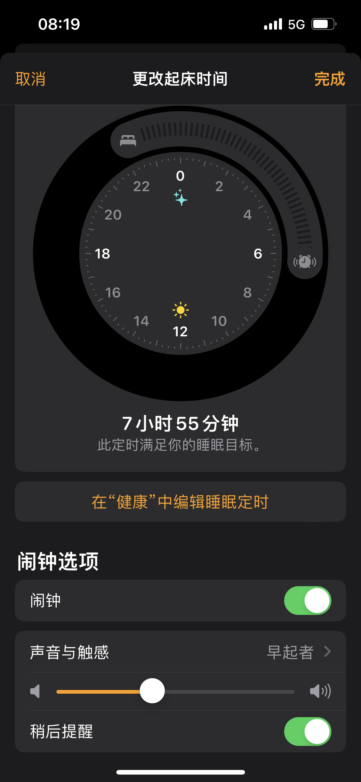 和健康关联的主睡眠闹钟,铃声有 早起者 等等是音量渐次变高。不会吓着人。