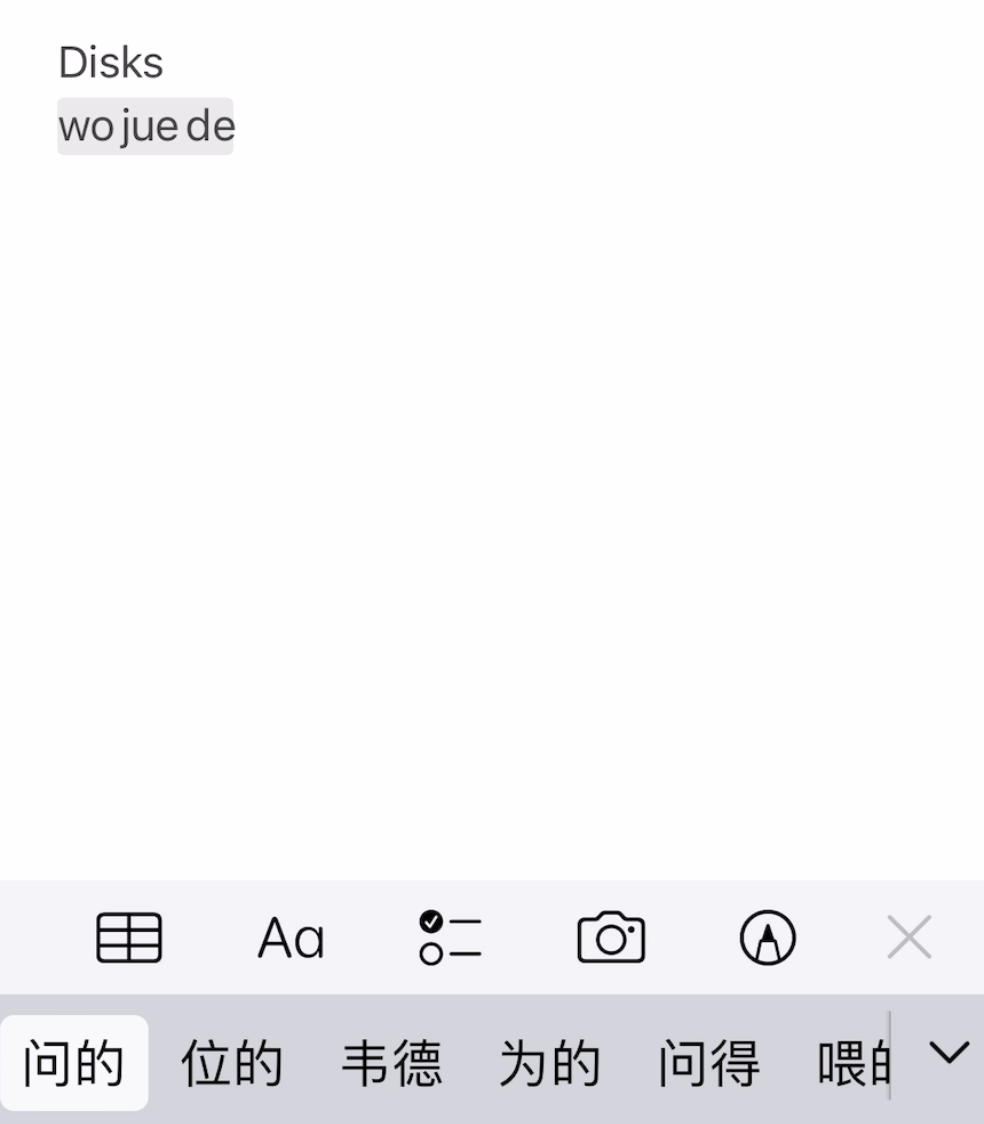当我使用中文拼音键盘时,我经常遇到从英文键盘切换到中文拼音键盘时出现的问题。 当我输入一些中文单词的拼音时,出现了中文单词,但我实际上无法选择它们。 只有在删除拼音并重试第二次后,它才有效。