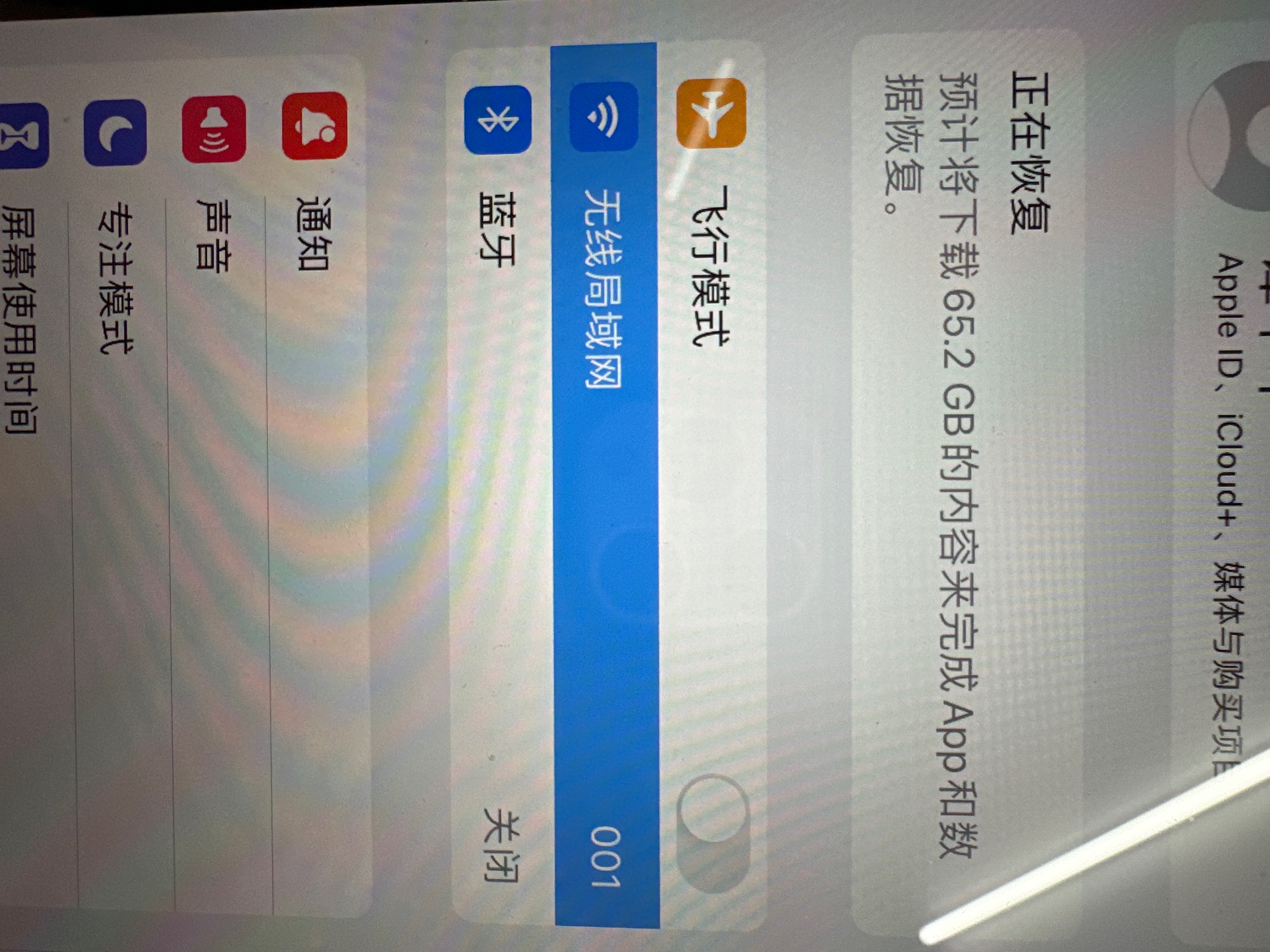 iCloud备份,就是微信+聊天记录很难恢复,相片和其他APP很快