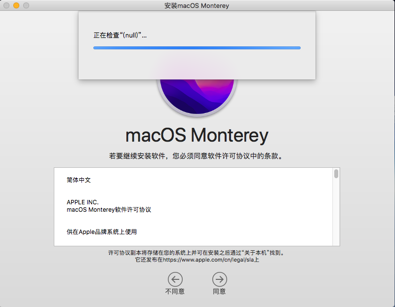 MacBook Air high Sierra10.13.16在升级Mac Monterey 时检查null(一直存在)