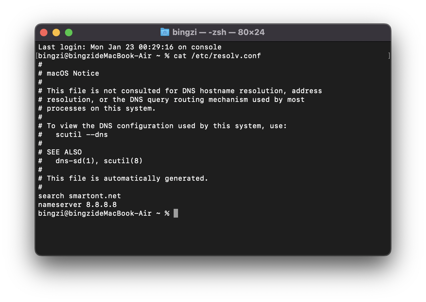 在我断开Wi-Fi或者重新链接到Wi-Fi的时候,DNS地址总是会被指向8.8.8.8.可是这并不是我希望或者是预期的到的一个DNS地址,我更希望他通过DHCP或者我指定的DNS。我在一些特定的地点时,8.8.8.8让我无法访问到一些资源,我需要这个问题得到修复。