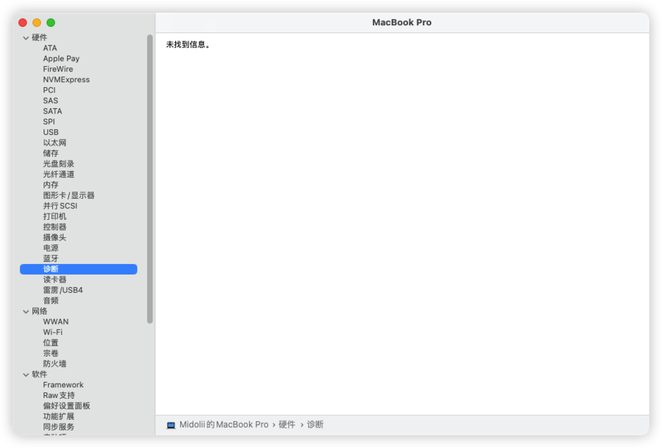 另外“系统信息”中的诊断项里面提示“未找到信息”