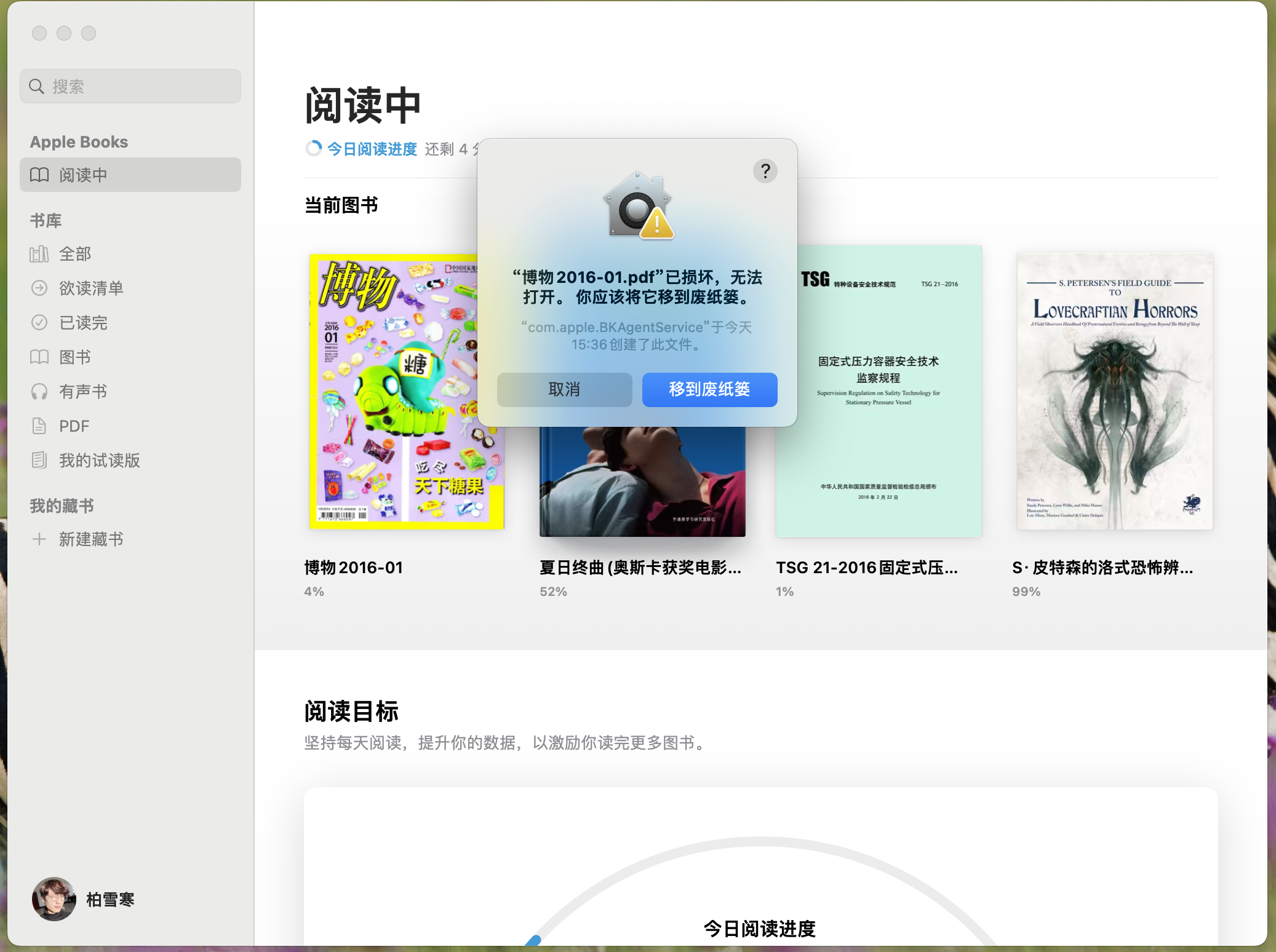 pdf预览可以正常打开,iphone通过icloud同步也可以正常看到,唯独Mac打开报错。用的是macbook pro 14寸,系统版本13.2。导入图书pdf点击打开直接转至wps,更换默认为预览、图书都不能使其在图书中正确打开。