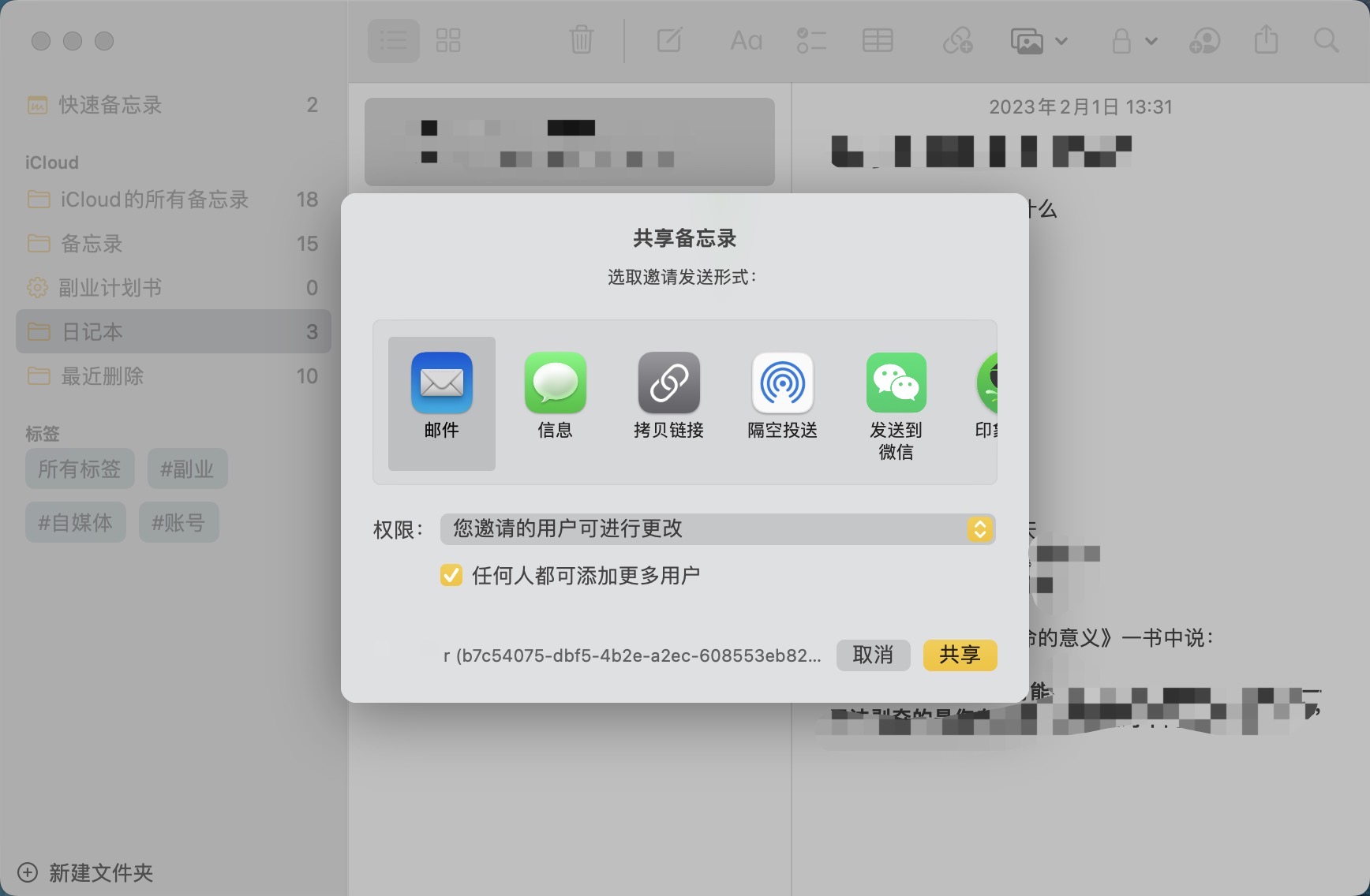 mbp M1备忘录卡住了这么处理?无法退出,点击取消或者共享都没反应,电脑系统未做任何升级(就是出厂系统)