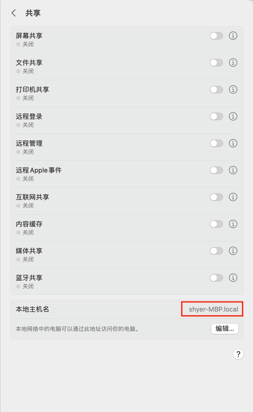 新入手M2版本MBP,系统更新到了13.2,因公司内有多台MAC,使用隔空投送多个设备名称重复,所以想更改隔空投送时显示的名称,升级os13之前,可以直接在设置共享页面更改电脑名称,但是新的13.2系统,进入共享设置页面后,没有电脑名称修改项了,并且更改了本地主机名后(图一),也没有效果(如图二,以iphone搜索隔空投送设备为例),求助各位大神解决办法。