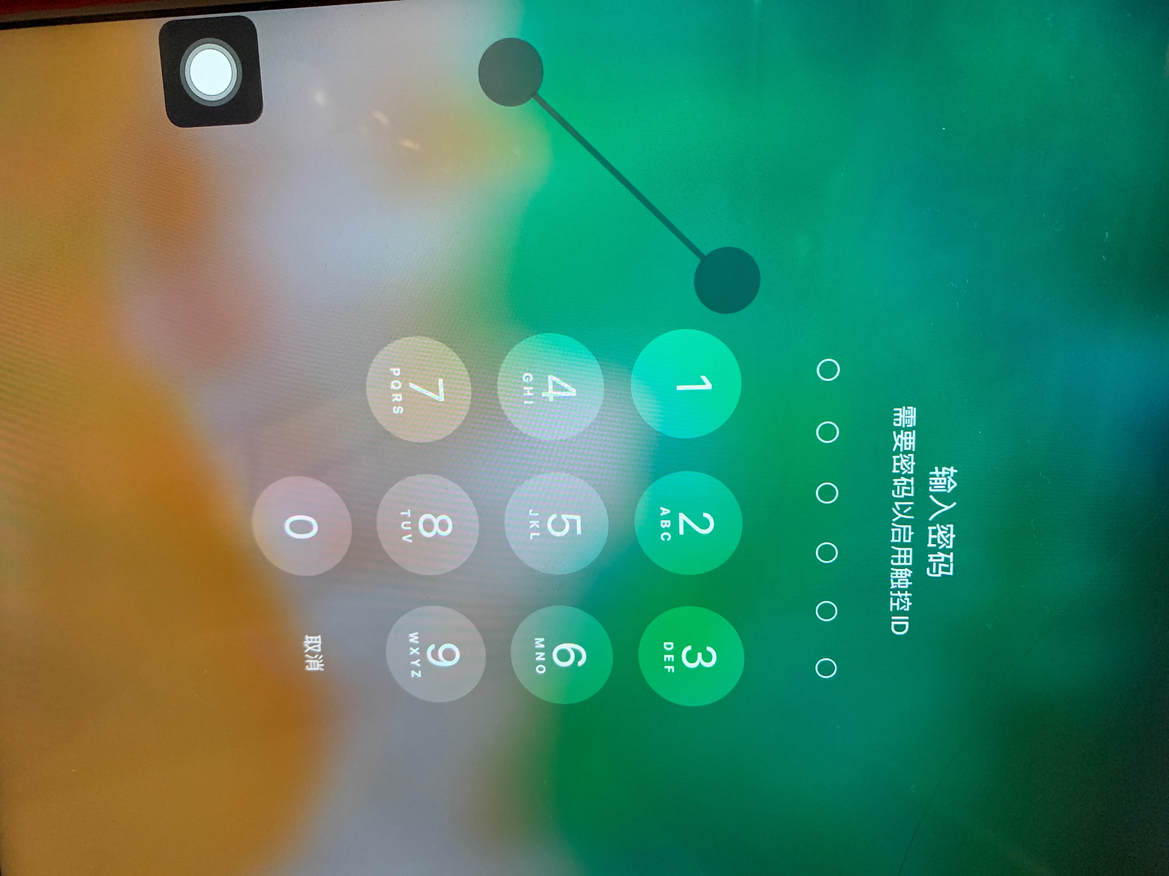 iPad锁屏状态下屏幕出现两个小圆点中间连着一条线失灵了