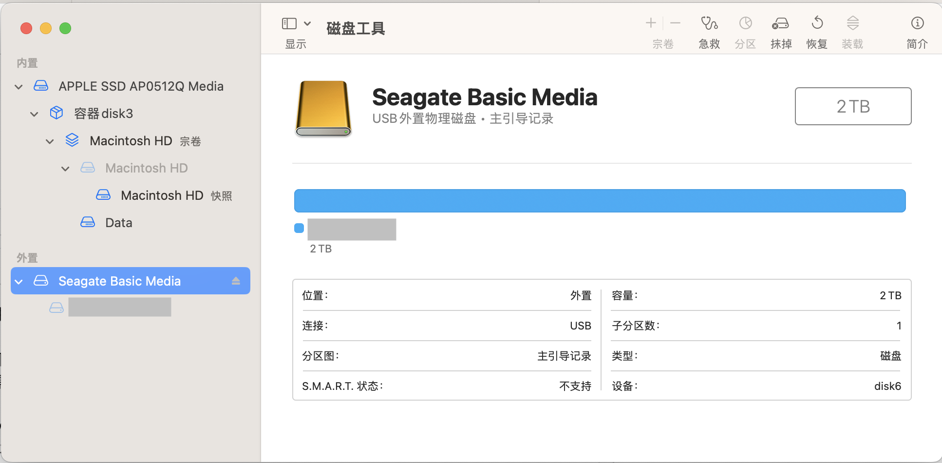 希捷 2T MacOS扩展(区分大小写,日志式)