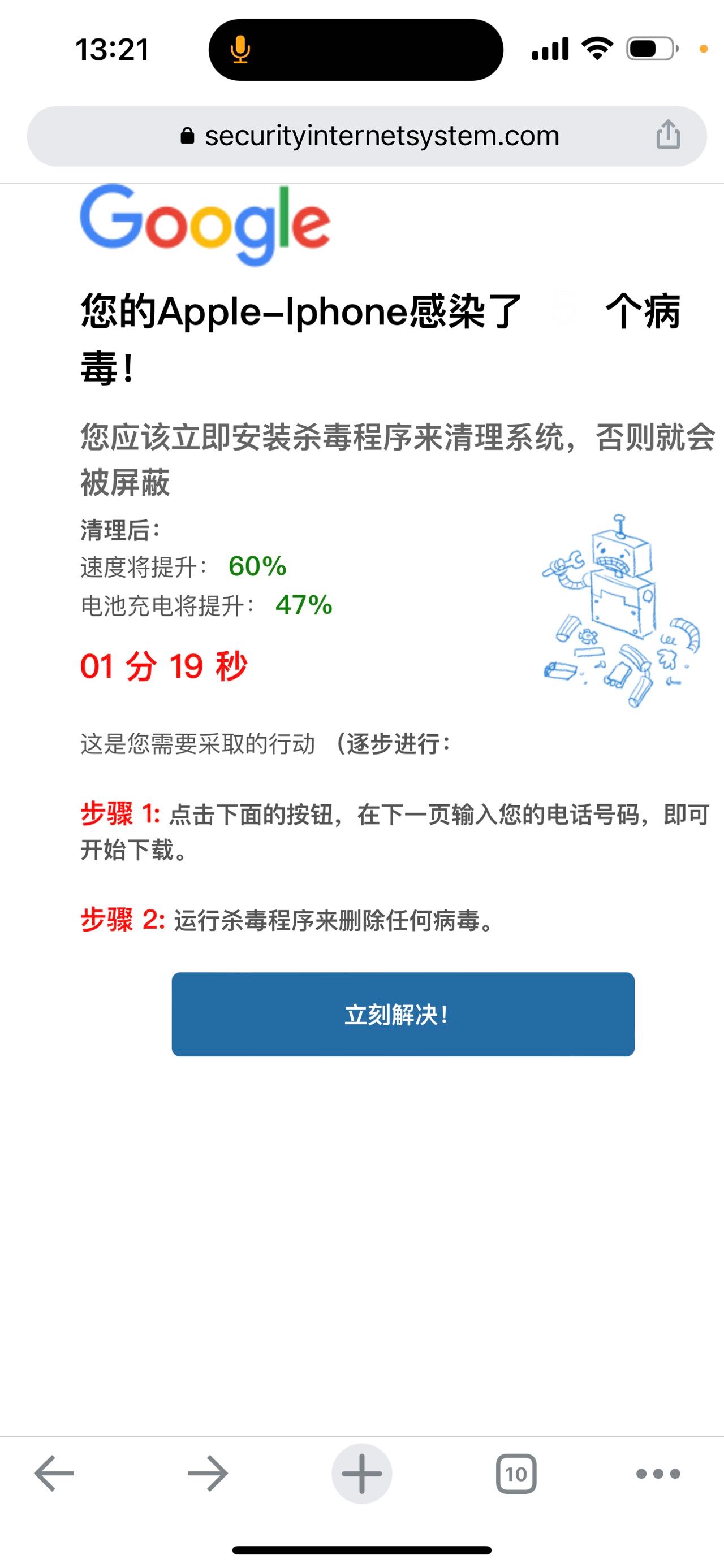 我想问一下 我不小心点击了 下面的立即修复 但是没有下载她的软件 这样手机有中病毒吗