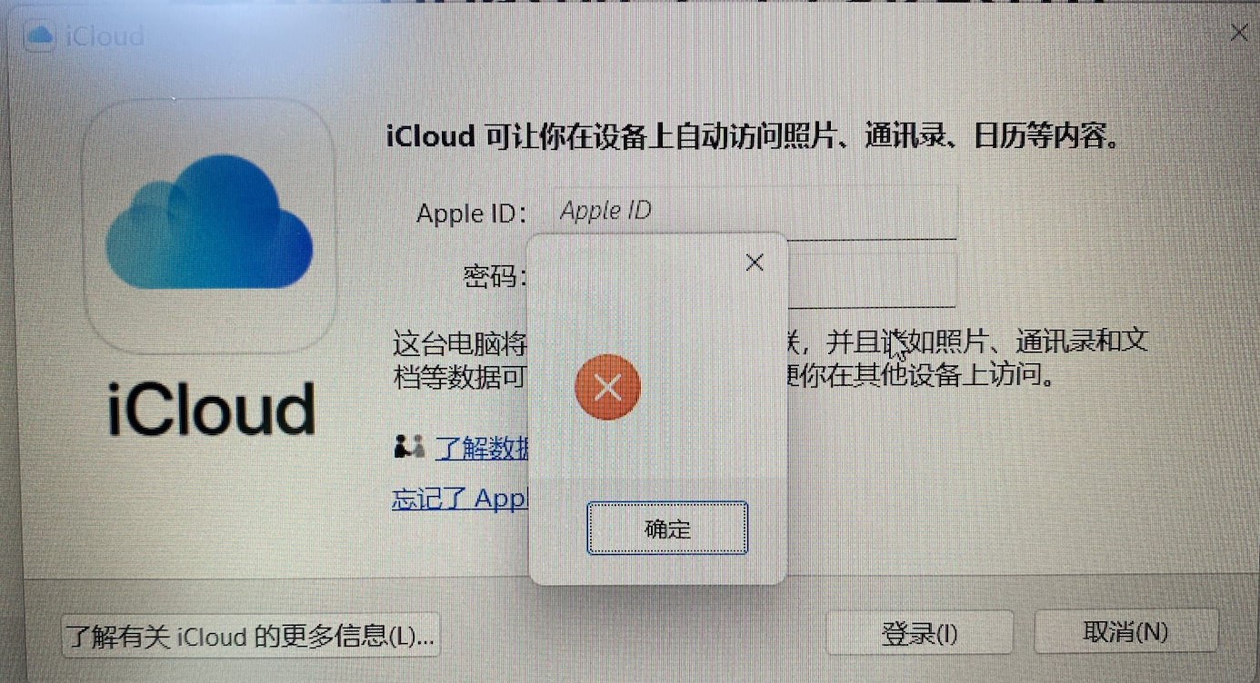 重新启动过三四次;重新在微软应用商店下载了两三次;网页端iCloud可以正常登录,但是软件就怎么都登不上。 系统是win11,今天发现这个问题是因为突然要在win端使用,但发现已经很久没有同步了(可能是之前有一次在受信任设备页误删了win端PC),感觉也没什么办法所以就卸载了以前下载的icloud及数据,重新安装,但问题是重装后登不上我的账户。