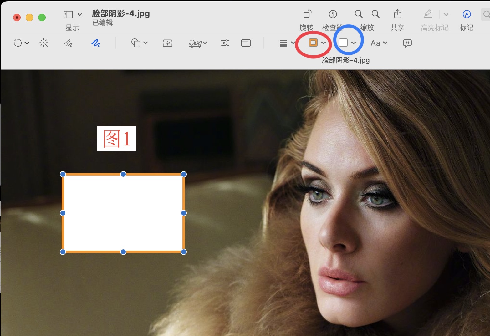 图1mac的标记功能,能一笔直接画出图2的空心红框吗?