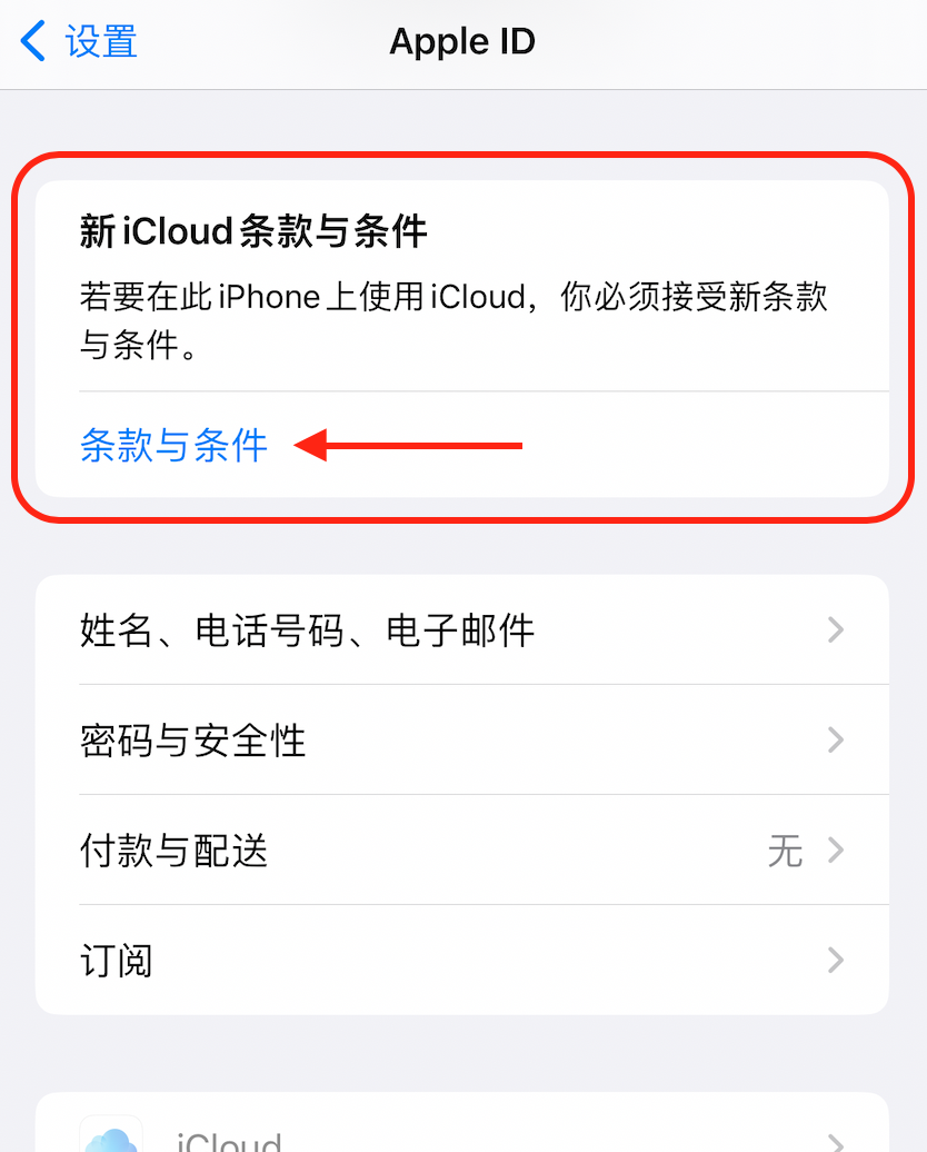 如你提供的截图中的信息所示,“iCloud 条款与条件”于前些时间有了更新。在重新接受新的条款与条件前,你的账户的所有 iCloud 服务都暂时不可用。